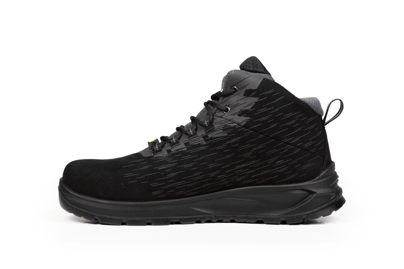 Tomaia:microfibra effetto suede idrorepellente ad elevata traspirabilità Fodera:BI-FRESH PLUS tessuto 3D ad alta traspirabilità ed elevata resistenza all’abrasione Puntale:BI-ALLOY in alluminio pressoforgiato ad alta resistenza Lamina:BI-SAFE tessuto "0" Perforation non metallico PS Suola:PU bidensità con battistrada BI-GRIP e cambrione BI-SHANK Soletto:DAMPER PRO ESDTaglie:36/48